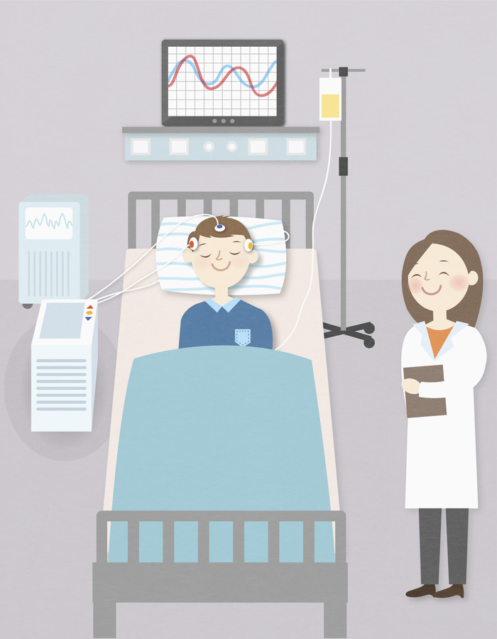 수면다원검사는 수면무호흡증 등 수면장애 진단을 위한 표준검사로 환자에게 센서를 부착하여 잠 자는 동안 뇌파, 심전도, 호흡상태를 체크하며 코골이와 수면무호흡증 등 수면 장애를 진단하는 검사다.