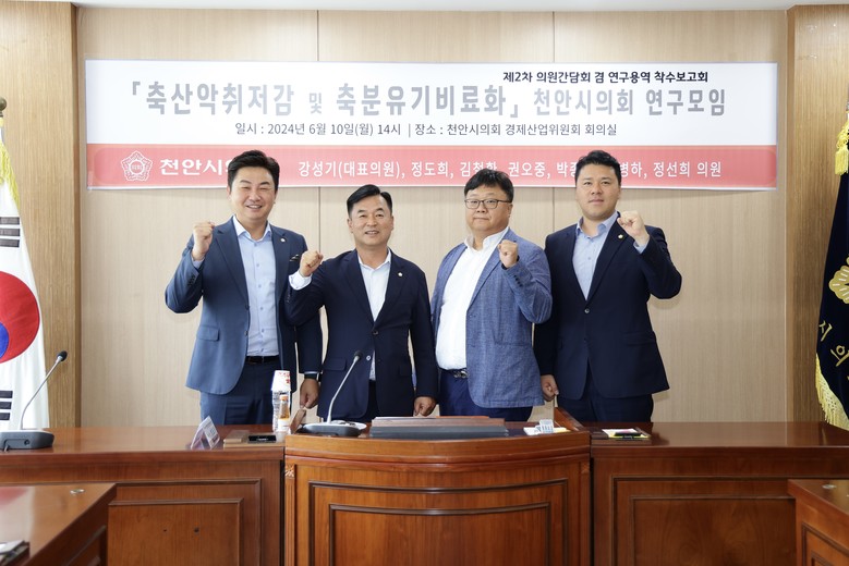 [천안시 세계타임즈=백택기 기자] 천안시의회「축산악취저감 및 축분유기비료화」연구모임(대표의원 강성기)은 10일, 제2차 의원간담회 및 정책연구용역 착수보고회를 개최했다.