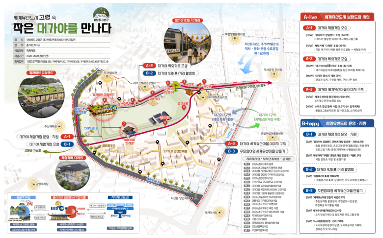 지역특화재생 사업은 지역의 역사·문화·산업 등 고유한 자원을 활용하는 사업으로 고령군 대가야읍 궁성지 일원(A=100,741㎡)에 세계문화유산으로 지정된 지산동 고분군과 대가야 고도(古都)지정 등의 특색을 살려 협력 기관으로 참여한 EBS 방송사의 다양한 컨텐츠를 활용한 가족친화형 체험거점시설과 대가야 특화거리를 조성할 계획이다.