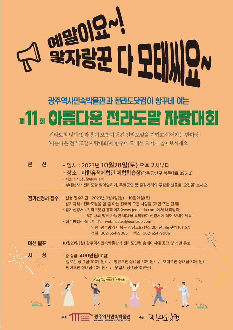 최경화 역사민속박물관장은 “전라도말 자랑대회에 많은 관심과 참여를 부탁드린다”며 “우리의 삶 속에 녹아있는 전라도말을 다시 꺼내보는 기회가 되길 바란다”고 말했다.