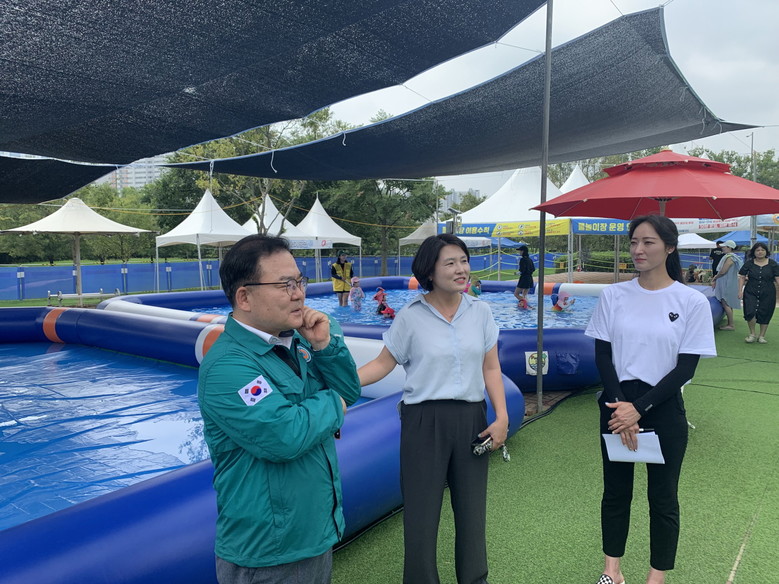 이번 점검은 폭염이 지속하면서 도심속 물놀이 시설 이용자가 늘어남에 따라 ▲물놀이 안전요원 근무현황 ▲구명환·안전조끼 등 필수 안전용품과 인명구조함 등 안전장비 배치 ▲시설물 관리 상태 확인 등 인명 피해를 최소화하는데 중점을 뒀다.