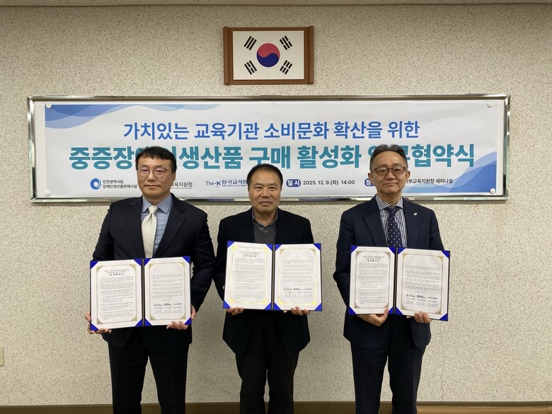 서부교육지원청 관계자는 “이번 협약이 책임 있는 소비문화 확산과 중증장애인생산품의 안정적 판로 확보에 기여하길 바란다”며 “세 기관이 지속적으로 협력해 지역 상생과 사회적 가치 실현의 모범 사례가 되기를 기대한다”고 말했다.