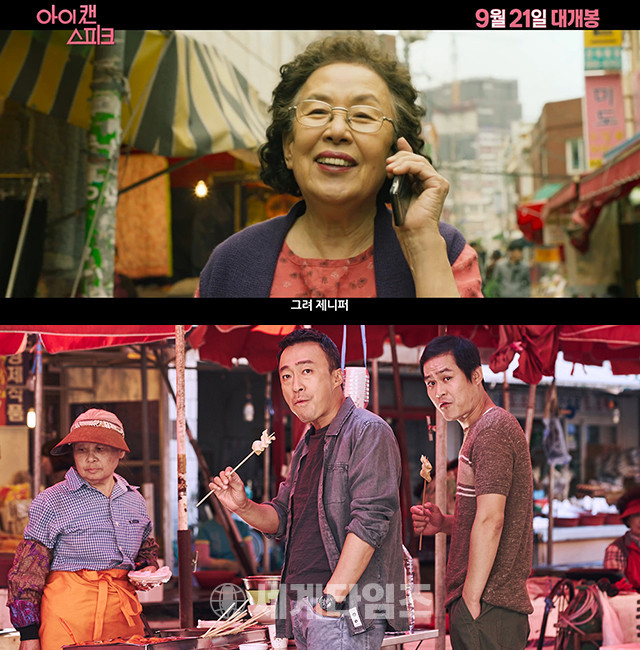 영화 '아이 캔 스피크' 메인 예고편에 나문희가 이제훈과 통화를 하며 연산시장을 걷고 있는 장면이 공개됐고, 영화 '보안관' 스틸에 이성민과 김성균이 기장시장에서 어묵을 먹으며 조진웅을 노려보고 있는 장면이 공개됐다.