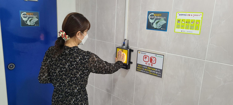 광주지역 공중화장실에는 안심비상벨이 설치돼 112상황실로 위치정보를 실시간으로 전달, 관할 경찰서에서 긴급출동 대응할 수 있다. 화장실에서 안심비상벨을 누를 경우 문밖에 설치된 경광등에 불이 들어오고 사이렌 경보가 울려 주변에 긴급상황을 전달할 수 있도록 해 범죄를 예방하고 있다.
