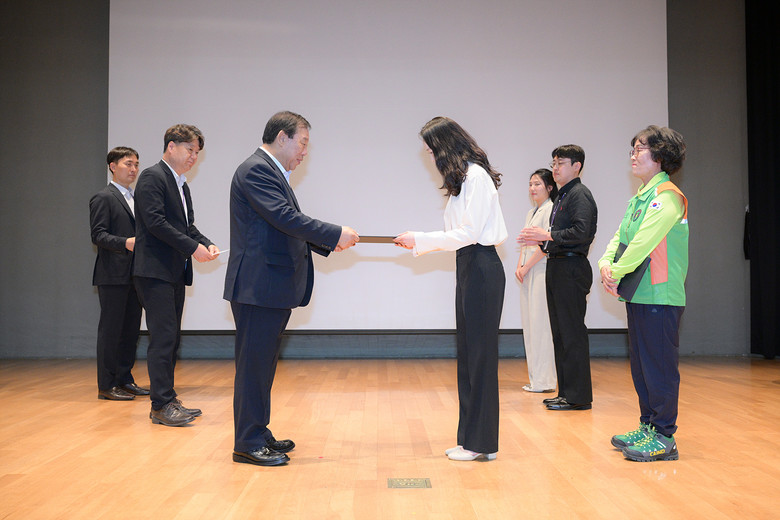 최민호 시장은 2일 시청 4층 여민실에서 열린 ‘6월 직원소통의 날’ 행사에서 1등 청렴인으로 선정된 서민아 연구사에게 포상을 수여했다.