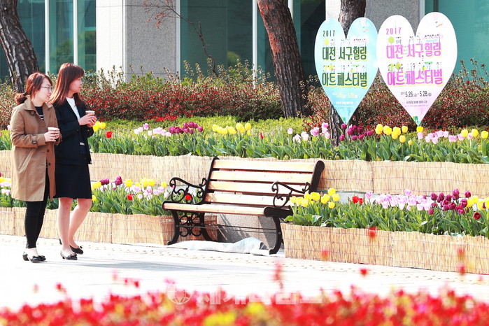 [대전 서구=세계타임즈 이장성 기자] 대전 서구청 광장에 형형색색의 아름다운 튤립 1만여 송이가 만개해 구청을 찾는 민원인과 구민들의 눈길을 사로잡고 있다.