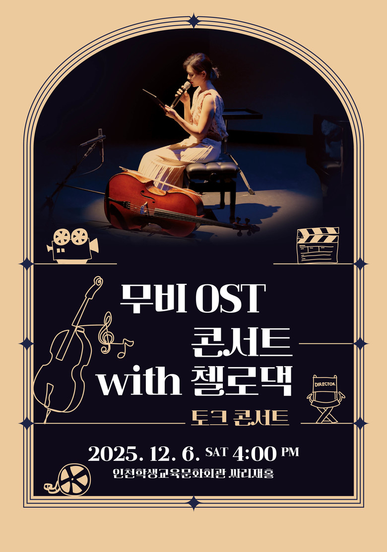 오프닝곡 오페라의 유령의 OST’Phantom of the Opera’을 시작으로 ▲러브어페어·시네마천국·러브스토리 OST 메들리 ▲라라랜드 ‘Another Day of Sun’ ▲미녀와 야수 ‘Beauty and the Beast’ 등의 무대가 조윤경의 해설과 첼로 연주로 펼쳐질 예정이다.