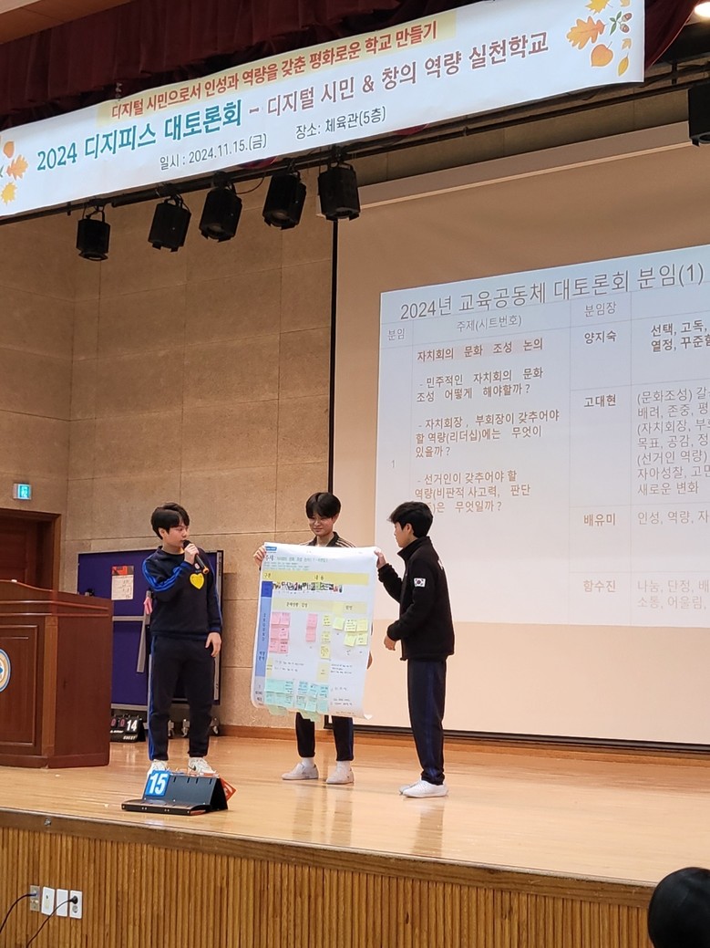 본교 학부모,학생, 교사 100여명이 10분임으로 나누어 2024년 디지피스 대토론회에 참여하였다.