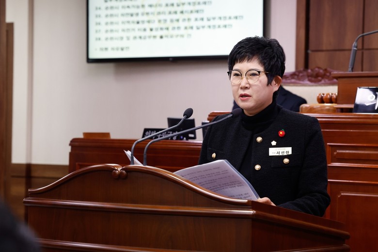서선란 의원은 “의회의 시정에 대한 질문은 시정 전반에 대하여 의원이 질문하고 집행부가 답변하는 의회의 중요한 기능 중의 하나”라며, “시의회에서 집행부에 시정질문 질의서로 요청할 때는 그 분야와 관련된 업무를 파악하여 성실히 답변해 주셔야 한다”고 말했다.