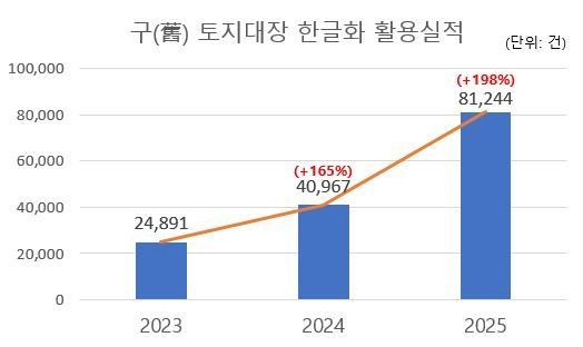 지난 4년간 구축한 옛 토지대장 한글화·전산화는 일제강점기 작성된 313만 6000장의 토지대장을 한글로 변환·디지털화해 기록물 노후화·훼손 문제를 해소하고 한자 및 일본식 표기로 인한 도민 불편을 개선하는 데 중점을 뒀다.