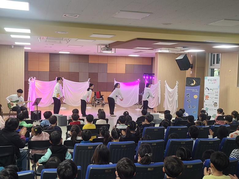 [시흥시 세계타임즈=송민수 기자] 배곧누리초등학교병설유치원(원장 정유진)은 2024학년도 4월 장애인의 날을 맞이하여 유아들의 눈높이에서 장애인식에 대한 교육적 효과를 높이기 위하여 아트솔루스가 연출하는 ‘별 빛을 따라’라는 장애인식개선 뮤지컬을 실시하였다.