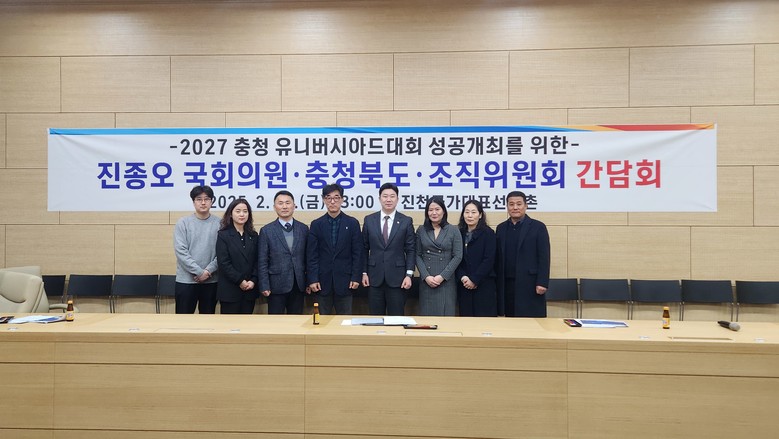 이날 간담회에는 진종오 국회의원, 충북도 한충완 문화체육관광국장, 박상일 대외전략수석보좌관, U대회 조직위원회 강연경 기획본부장 등이 참석했다.