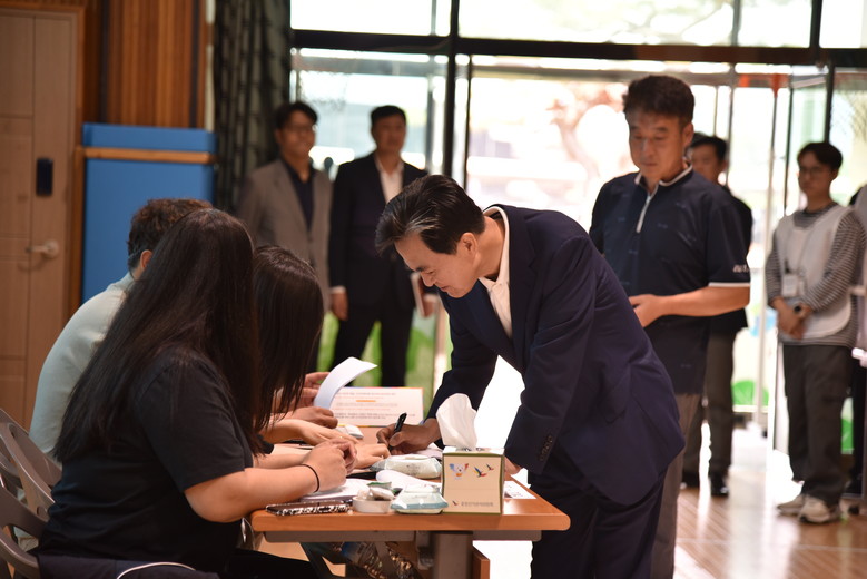 김 지사는 투표에 앞서 이른 새벽부터 투표사무에 종사하고 있는 사무원과 참관인 등 관계자들을 격려하고, 아침 일찍부터 투표하러 나온 도민들에게도 인사를 건넸다.