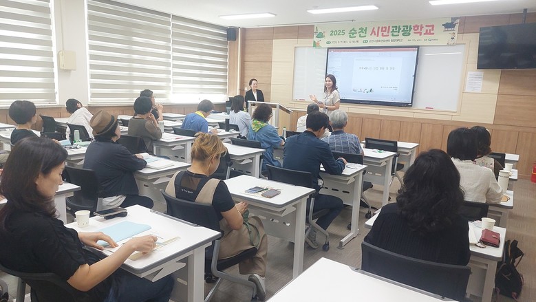 ▲ 순천 시민관광학교에 참여한 시민들이 치유분야 강좌를 듣고 있다