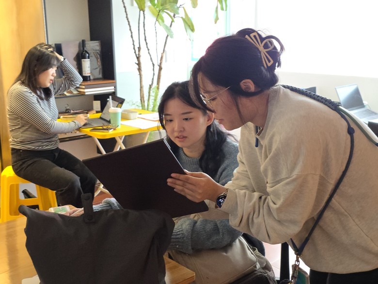 ▲ 청년 나다움디자인 스튜디오 과정에 참여한 청년들이 포트폴리오 사진찍기 체험을 하고 있다