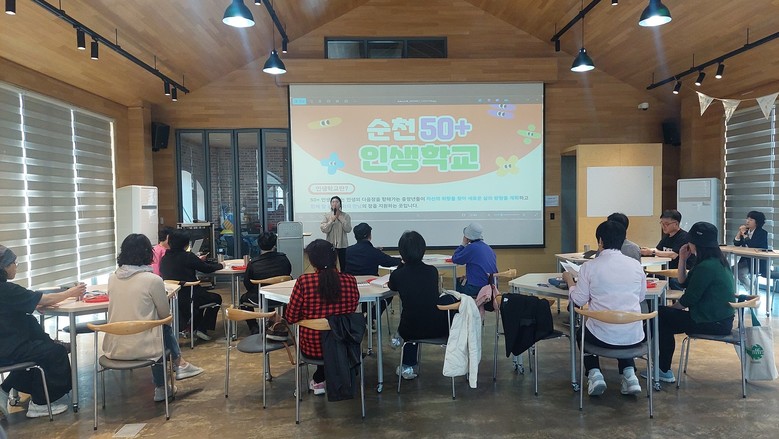 ▲ 순천50+인생학교 참여자들이 교육에 참여하고 있다