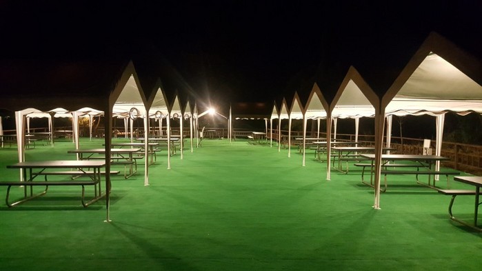 셀프 그릴존은 서늘한 그늘이 되어줄 천막과 6인 테이블을 비롯해 그릴, 집게, 가위 등 바비큐 세트로 구성돼 있다. 가족들의 식성과 기호에 맞게 육류, 야채 등 음식 재료를 준비해 온가족들의 입맛을 당기는 바비큐 요리를 즐길 수 있다. 즉석에서 스모키한 바비큐들이 그릴에서 구워진다. 바비큐에 어울리는 청량한 맥주와도 잘 어울린다. 주류와 음료는 리조트에서 구입가능하다.