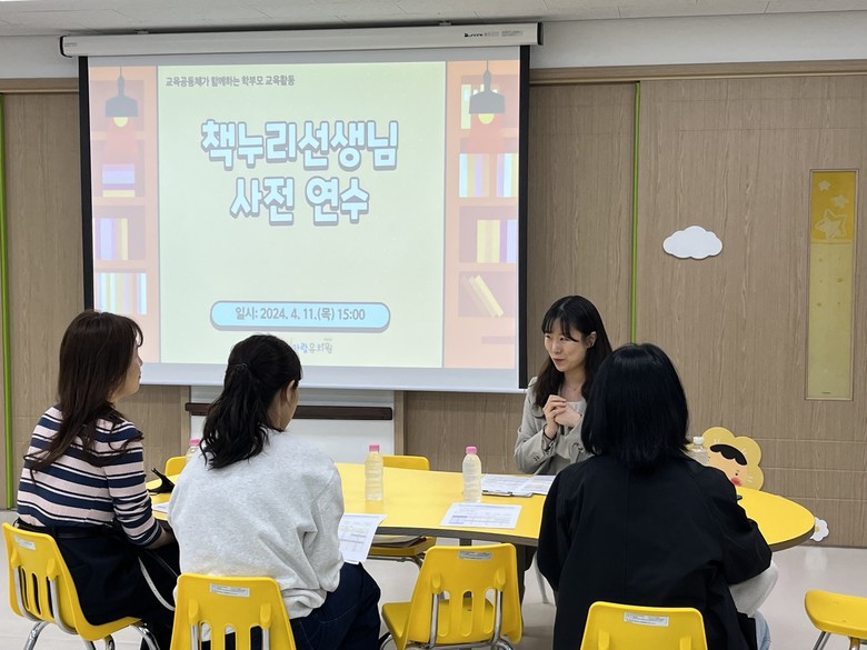 안정적이고 원활한 프로그램 운영을 위해 유아들에게 적합한 큰책 인성동화 구입 및 도서관을 재정비하고 프로그램에 참여하는 학부모를 대상으로 사전연수를 실시하여 4월 15일(월) 만 4세반 유아부터 첫 출발을 하였다.