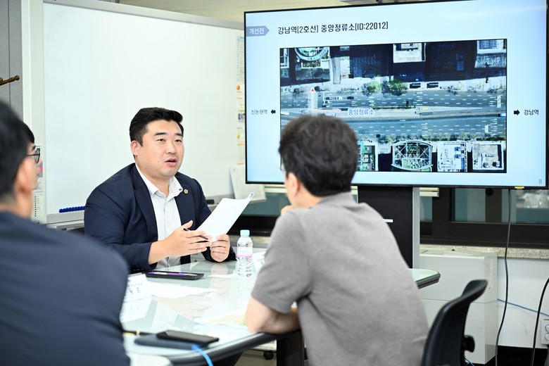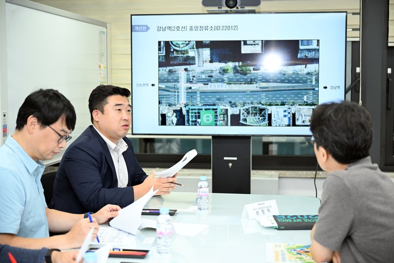 이어 강남역 중앙정류소 2개소를 찾아 현장을 직접 점검했다. 서울시는 해당 정류소에 대해 중앙승강장 연장 및 횡단보도 추가 설치를 주요 내용으로 하는 공사를 2023년 10월 17일부터 11월 25일까지 시행해 완료한 바 있다. 연구모임은 해당 현장에서 ▲보행 밀집도 완화 ▲무단횡단 예방 ▲이동거리 단축을 통한 안전성·편의성 확보 등 개선 결과와 운영 실태를 확인했다.
