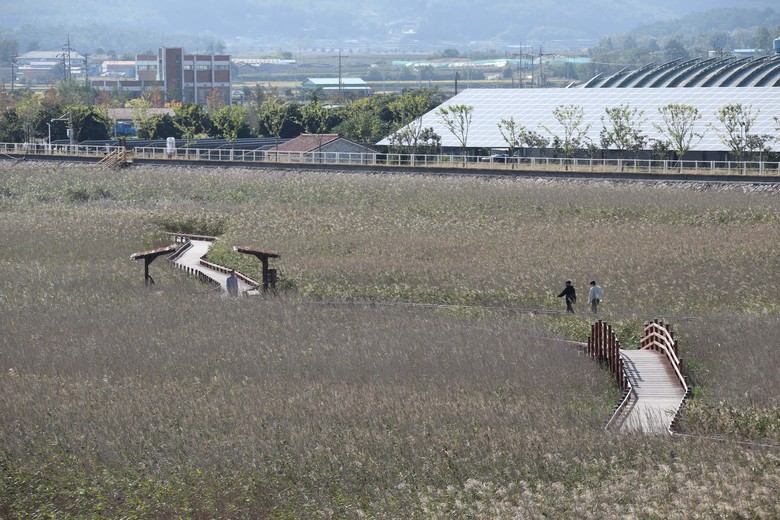 신선한 가을바람에 흩날리는 억새와 갈대, 코스모스를 배경으로 낭만 가득한 추억을 만들어 볼 수 있는 장소다.