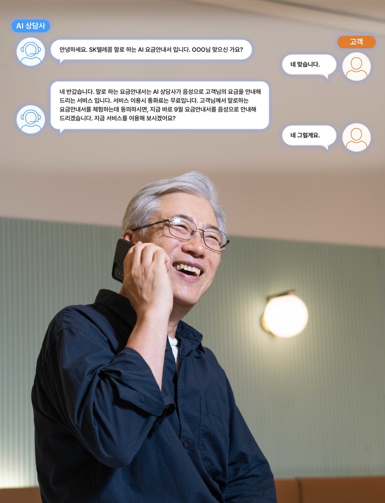 '말로 하는 요금안내서'는 AI 상담사가 고객에게 전화해 매월 납부해야 하는 총 요금과 통신요금, 휴대폰할부금, 부가서비스 요금 등 상세내역을 안내한다. 전화 기반의 직접적인 소통이 가능한 서비스로 통화료는 무료이며, 고객은 기존 청구서의 부달이나 분실 위험 없이 청구 내역을 편리하게 확인할 수 있으며 매월 반복적으로 찾아보는 불편도 해소할 수 있다.