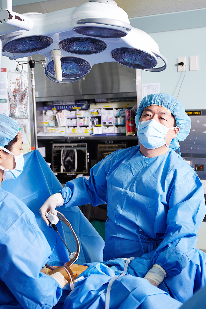 | ▲복강경 수술 중인 기경도 교수 |