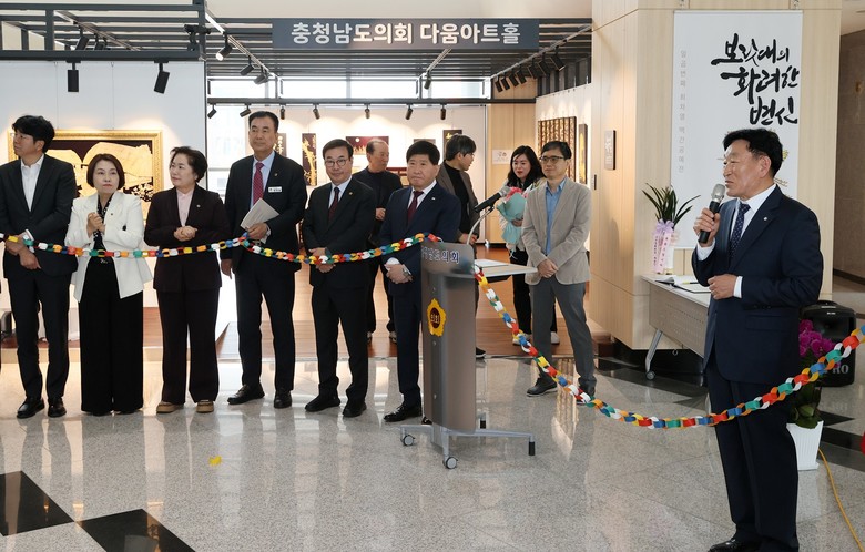 이날 작가와의 만남에는 홍성현 의장(천안1·국민의힘)과 김옥수 의원(서산1·국민의힘), 이용국 의원(서산2·국민의힘), 이연희 의원(서산3·국민의힘)을 포함, 관람객 50여 명이 참석해 작가로부터 작품의 의미를 설명 듣고 감상을 공유하는 시간을 가졌다.