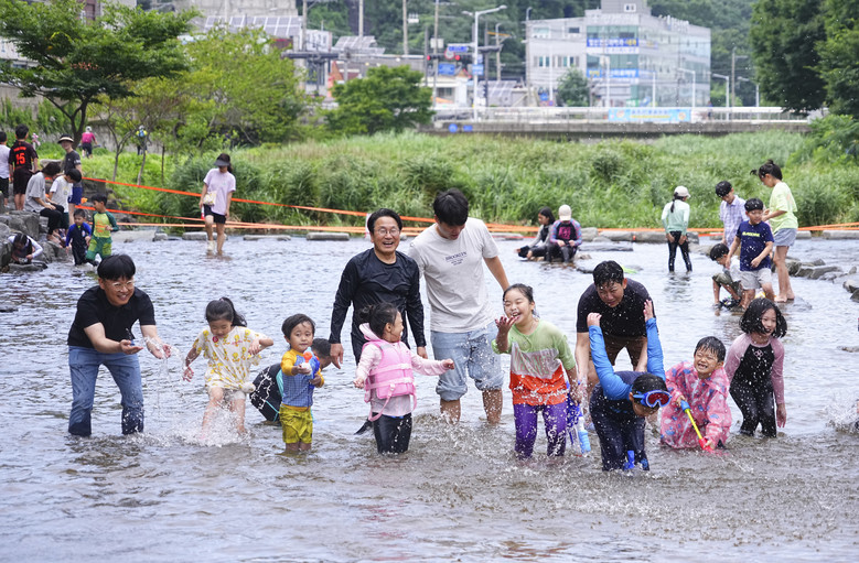 광주광역시(시장 강기정)는 13일 동구 용산동 동산타워 주변 광주천에서 ‘자연친화형 물놀이장’ 개장행사를 개최했다. 이날 개장행사에는 강기정 시장을 비롯해 박미정 광주시의회의원, 임택 동구청장, 김병수 광주환경공단 이사장, 시민 등이 참석했다.