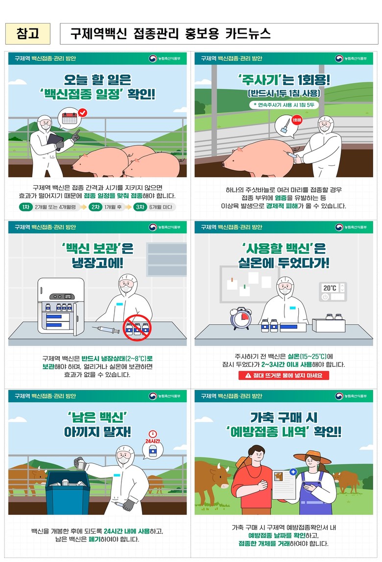 소규모 농가*의 경우 시군 공수의사 등 전문 인력을 동원해 접종을 지원하고, 전업 규모 농가는 자가접종을 원칙으로 한다. 다만 고령 등으로 자가접종이 어려운 경우 도 자체사업**을 통해 접종을 지원한다.