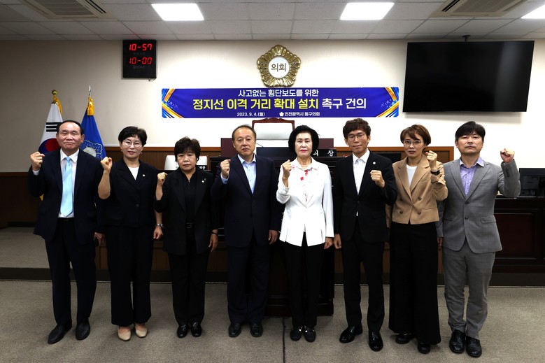 동구의회는 촉구 건의안을 통해 △주무관청으로서 인천광역시경찰청과 인천중부경찰서는 횡단보도 정지선 이격 거리 확대 설치를 적극 검토 및 협조하고 △인천광역시경찰청, 인천중부경찰서, 인천광역시 동구청은 상호 간 적극적인 행정으로 횡단보도 정지선 이격 거리 확대 설치 방안과 정책을 마련하여 주민의 교통안전 및 복리증진을 실현하라고 촉구했다.