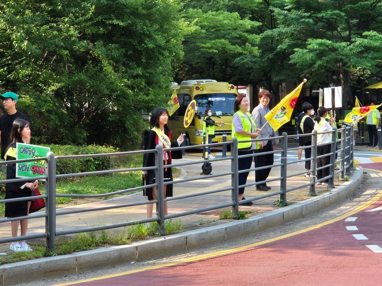 ◦ “학생들의 안전한 등하굣길을 위해 천천히, 경적을 삼가주세요.”학교 앞과 로타리에서 등학교길 운전자 계몽 캠페인 열어