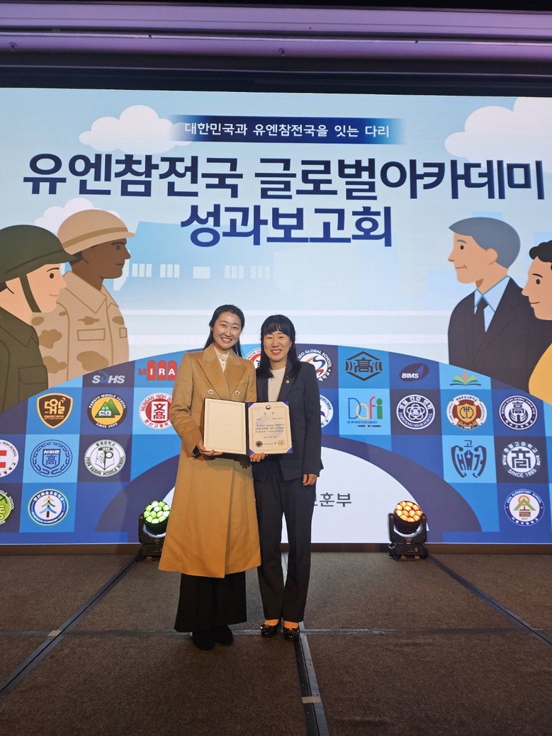 [남양주시 세계타임즈=송민수 기자] 평내고등학교(교장 이준호)가 지난 12월 19일 JW메리어트 동대문스퀘어 서울에서 개최된 '2025년 유엔참전국 글로벌 아카데미 성과발표회'에서 우수학교로 선정되어 국가보훈부 장관상을 수상했다.