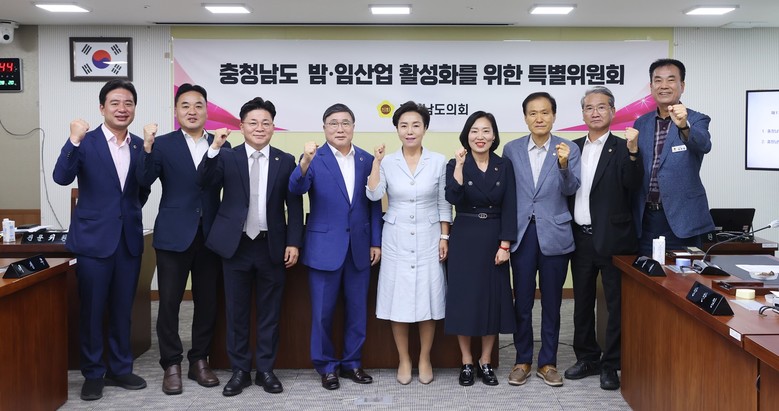 밤‧임산업특위는 대한민국의 대표 임산물이자 전국 대비 약 60%를 차지해 전국 1위를 차지하고 있는 충남도 밤 산업의 활성화를 위해 구성됐으며, 2025년 12월 31일까지 운영된다. 위원으로는 윤기형(논산1·국민의힘), 김민수(비례·더불어민주당), 신순옥(비례·국민의힘), 박정수(천안9·국민의힘), 신영호(서천2·국민의힘), 고광철(공주1·국민의힘), 방한일(예산1·국민의힘) 의원 등 총 9명이다.