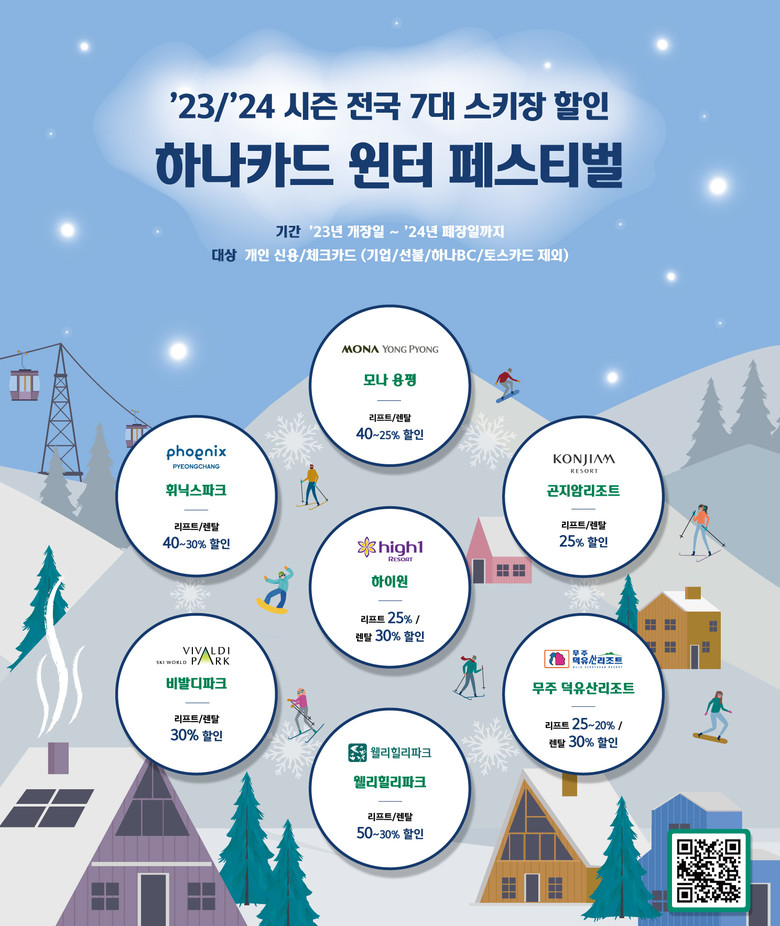 전국 7개 스키장 할인 이벤트에 대한 자세한 내용은 하나카드 PC 및 모바일 홈페이지와 하나페이 앱에서 확인할 수 있다.