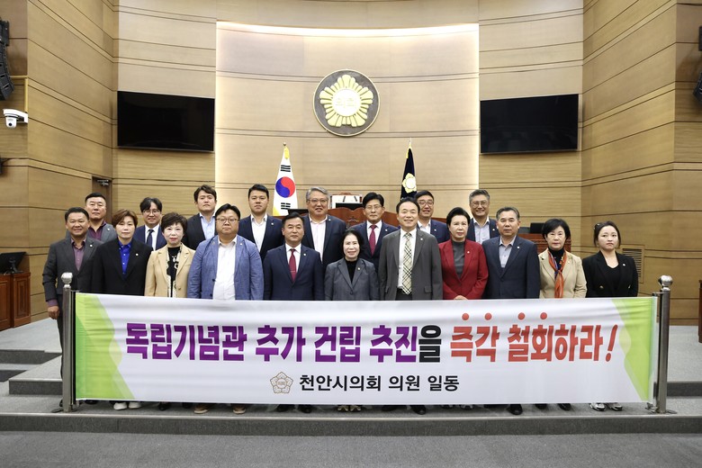 천안시의회 강성기 의원(경제산업위원회 위원장, 목천읍・북면・성남면・수신면・병천면・동면・원성1·2동)이 대표로 발의한 결의안은 추가적인 독립기념관 건립계획의 즉각적인 철회 요구와 국민의 공감을 얻지 않은 추가 건립은 지속적인 반대가 내용의 핵심이다.