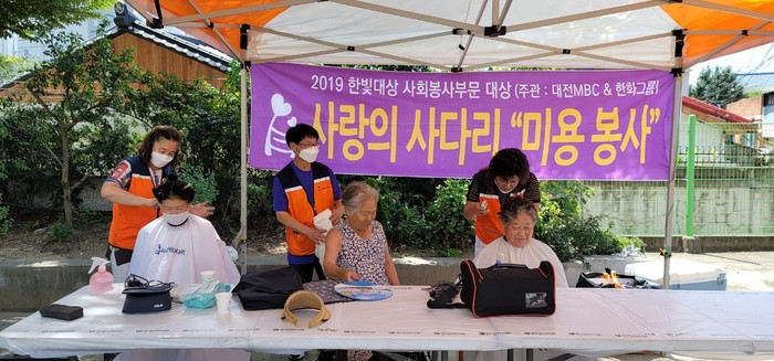 이날 봉사는 오전8시부터 도배 기초작업 봉사를 시작으로 동구 대동 36세대 수해주민들에게 현장에서 직접구운 바비큐 통닭을 36세대에 직접 배달을 하였고, 수재민들에게 미용봉사를 하였다.