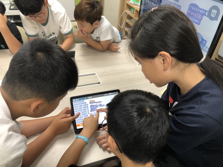 이 프로그램은 고학년 선배가 먼저 학습한 AI-SW 관련 프로그램을 저학년 후배들이 수업을 할 때 1대 1로 튜터가 되어 체험을 쉽게 할 수 있도록 지원해주는 프로그램으로, 교내에 구축된 디지털 AI 체험실에서 3년째 운영되고 있다.