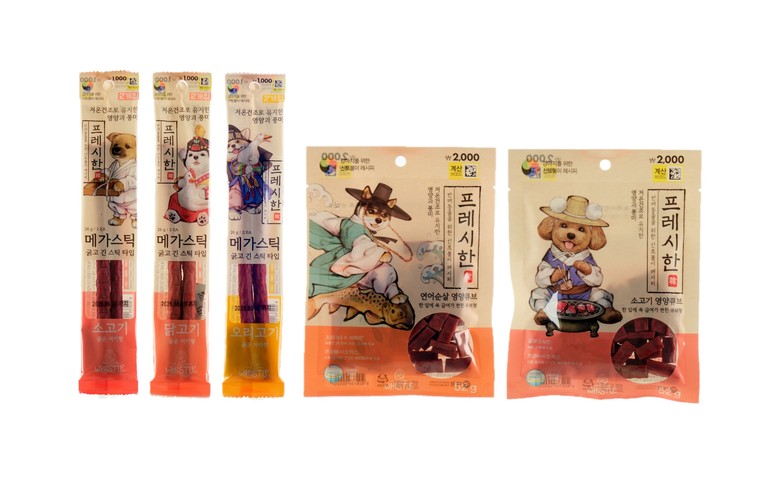 휘슬 프레시한(韓) 저키는 반려견의 선호도가 높은 소고기, 오리고기, 닭고기, 연어 등을 원료로 한 반려견 간식이다. 특히 저온 건조 방식을 적용해 원료 본연의 영양과 풍미를 유지한 것은 물론 쫄깃한 식감을 구현했다.