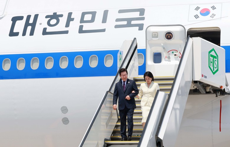 일본 도착한 이재명 대통령 부부