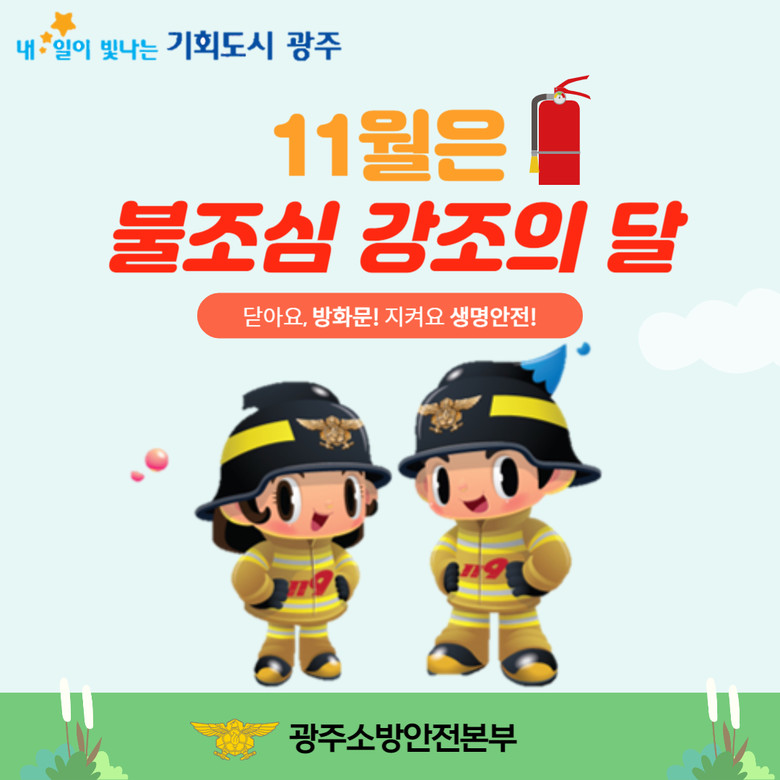 광주소방안전본부는 국민과 함께하는 불조심 환경 조성을 목표로 공감형 화재예방 분위기 조성, 맞춤형 소방안전교육, 참여형 119안전문화 행사 등을 추진한다.