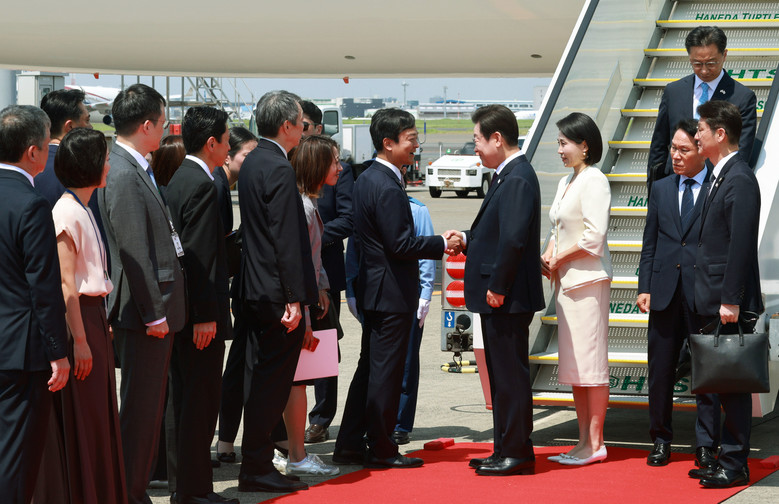 일본 도착한 이재명 대통령 부부