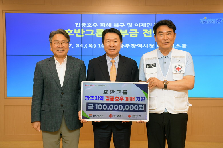 강기정 시장은 “호반그룹에서 보내주신 기부금은 이번 집중호우로 큰 고통을 받고있는 시민들에게 위로와 도움이 될 뿐만 아니라 기업과 지역이 상생할 수 있는 모범사례로 평가될 것”이라며 “어려운 시기를 함께 극복하고 회복할 수 있도록 따뜻한 손길을 전한 호반그룹에 감사드린다”고 말했다.