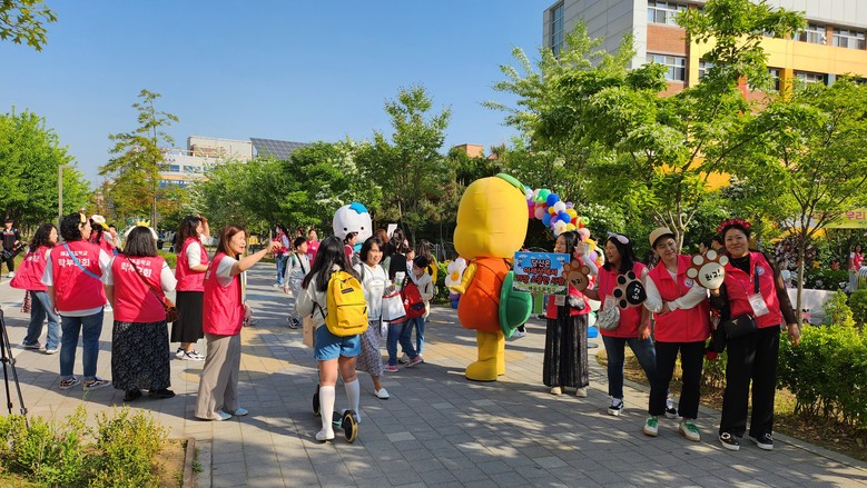 [시흥시 세계타임즈=송민수 기자] 5월 2일 목요일 아침, 배곧초등학교(교장 김수진) 학부모회에서는 5월 어린이날을 맞아 학생들에게 전하는 응원의 메시지, 평화로운 학교문화 조성을 위한 캠페인, 시흥 사랑을 실천하는 등굣길 행사를 개최하였다. 이번 행사는 시흥의 마스코트인 해로&토로와 학부모회가 함께하였으며 등교하는 학생들에게 하이파이브를 하며 어린이날 선물을 증정하는 것으로 시작하였다.