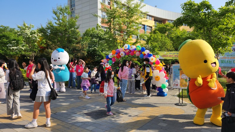 신나는 등굣길 조성을 위해 교문에는 풍선아치와 음악, 비눗방울을 설치하여 마치 레드카펫과 같은 분위기를 만들었으며 중앙현관 게시판에는 대형 포토월을 설치하여 등교하는 학생들과 학부모, 본교 교직원들이 서로를 찍어주거나 함께 찍는 등 시종일관 따뜻한 분위기가 이어졌다.
