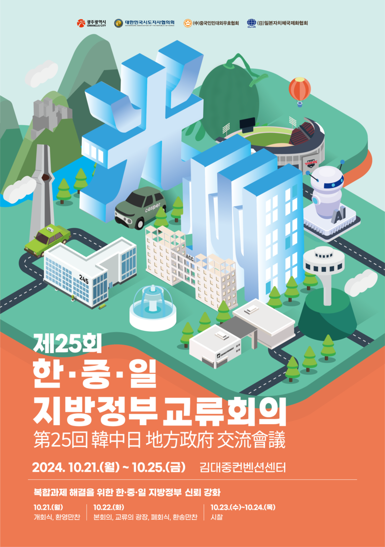 교류회의에는 강기정 광주시장, 유민봉 대한민국 시도지사협의회 사무총장, 양완밍 중국인민대외우호협회 회장, 야스다 미츠루 일본자치체국제화협회 이사장 등 한중일 지방정부 관계자 400여 명이 참석한다.