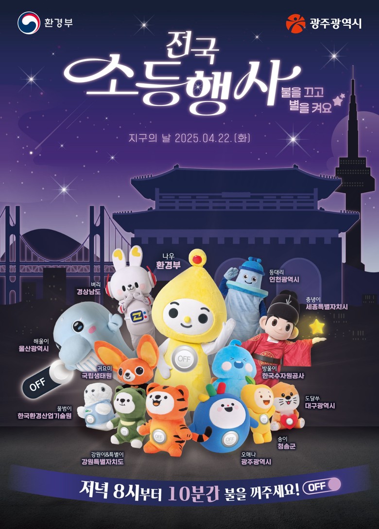 22일 밤 8시부터 10분간은 전국 동시 ‘소등 행사’가 실시된다. 광주시에서는 시청‧구청 등 공공기관, 아파트 단지 100여 곳이 참여한다.