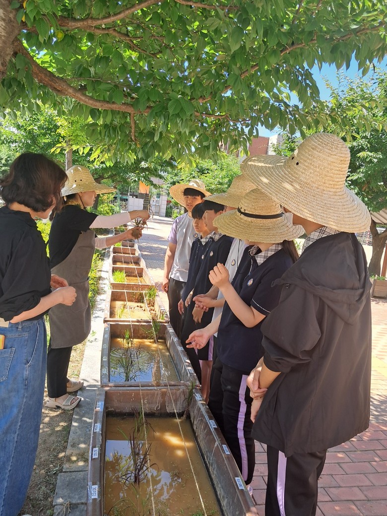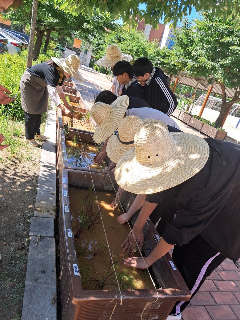 또한, 3학년 기술가정 교육과정과 연계한‘벼농사 프로젝트’의 일환으로 생물종 다양성을 지키는 토종벼 모내기를 실시하였고, 이후 학생들은 미꾸라지를 활용한 친환경 농법을 사용하여 벼의 성장을 연중 관찰하고 학습할 예정이다.