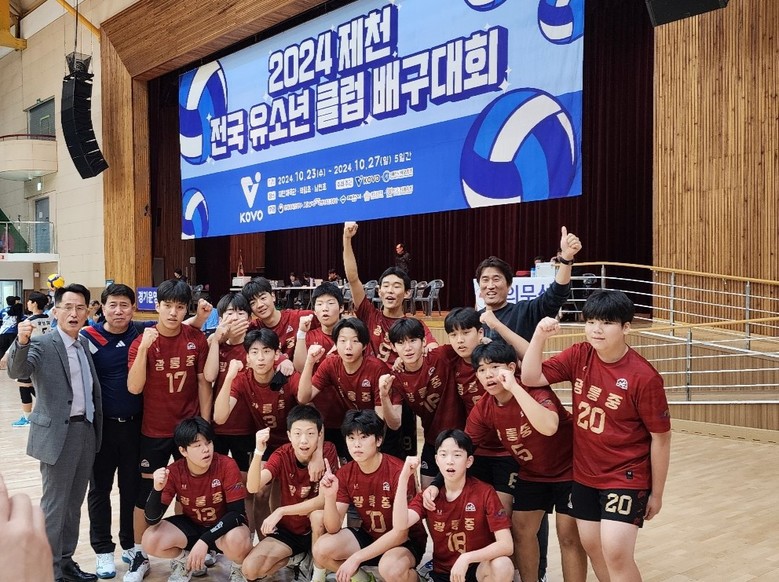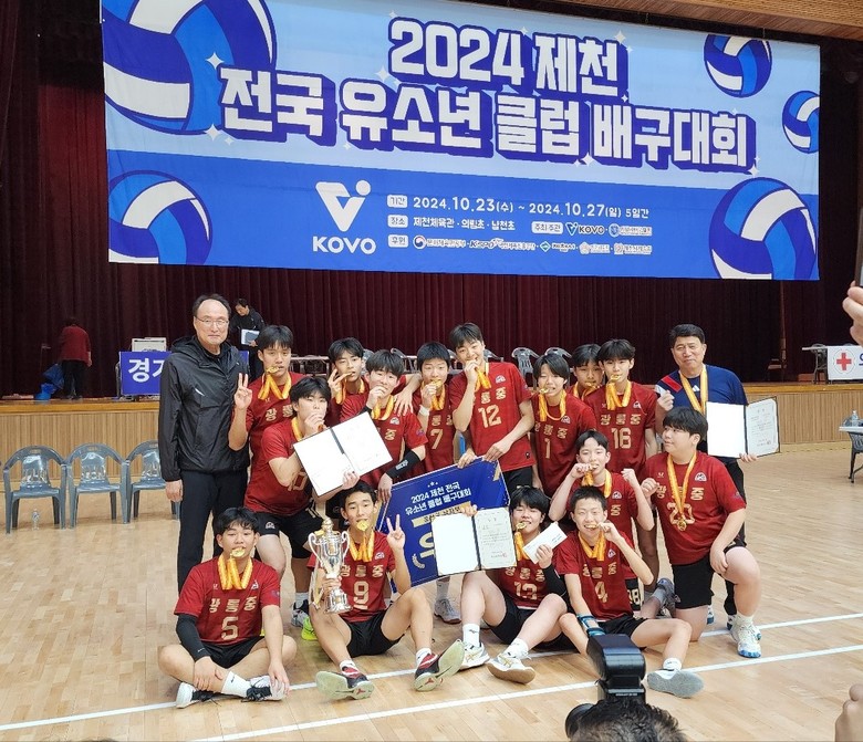 [남양주시 세계타임즈=송민수 기자] 경기도구리남양주교육지원청 광릉중학교(교장 민연식)가 지난 10월 23일 한국배구연맹에서 주최하는 「2024 제천 전국 유소년 클럽 배구대회(KOVO)」남자 중등부 결승에서 대전 도안중학교를 2:0으로 이기고 우승을 차지했다.