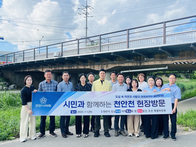 이병하 위원장은 “천안천은 도심의 중앙을 관통하며 다양한 시민 활동이 이루어지는 공간으로, 단순한 수로 기능을 넘어 복합적인 도시 인프라로서의 발전 가능성이 크다”며, “부서 간 유기적 협력과 실행 가능한 마스터플랜 수립이 절실하다”고 강조했다.