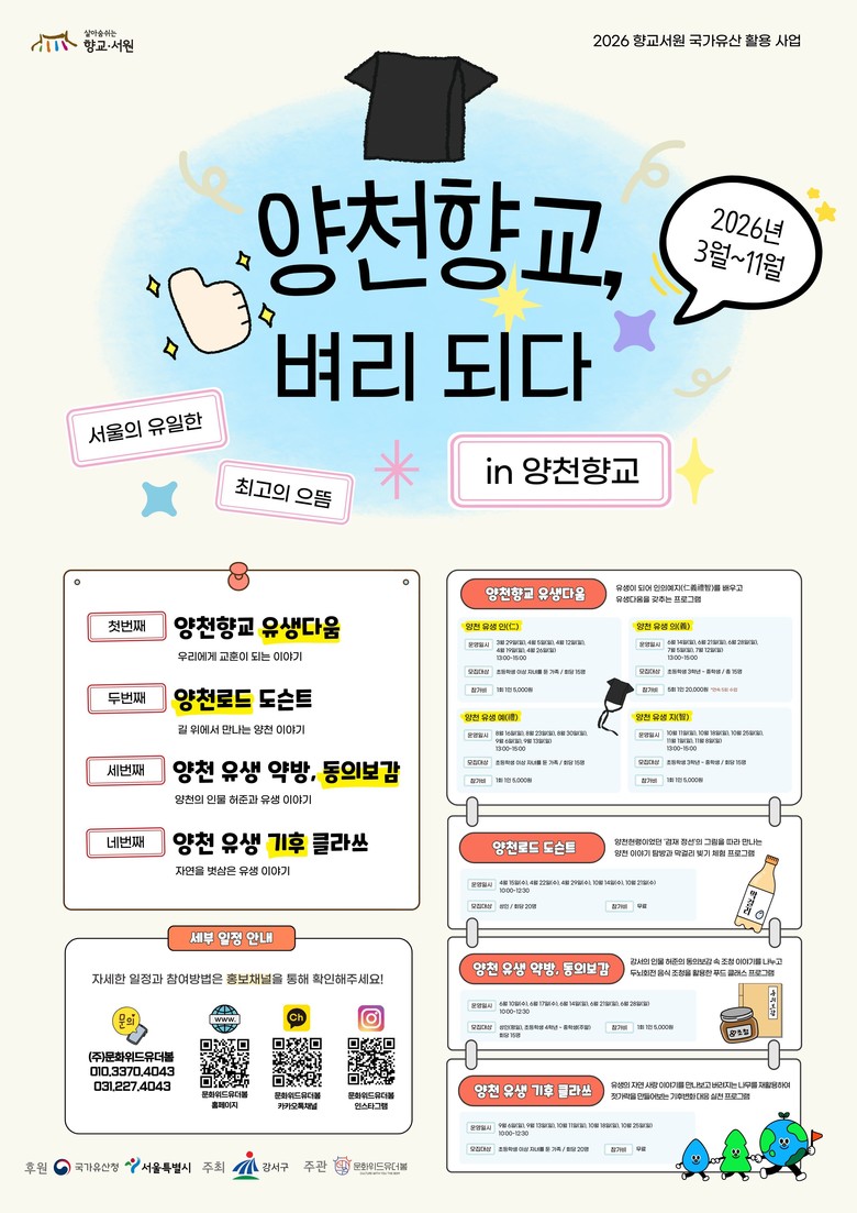 주요 프로그램은 ▲양천향교 유생다움 ▲양천로드 도슨트 ▲양천 유생 약방, 동의보감 ▲양천 유생 기후 클라쓰 등이다.
